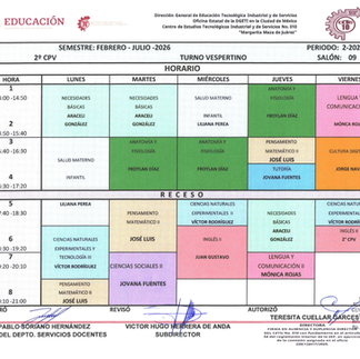 Les informamos que ya pueden consultar los horarios de clases correspondientes al presente periodo escolar.
